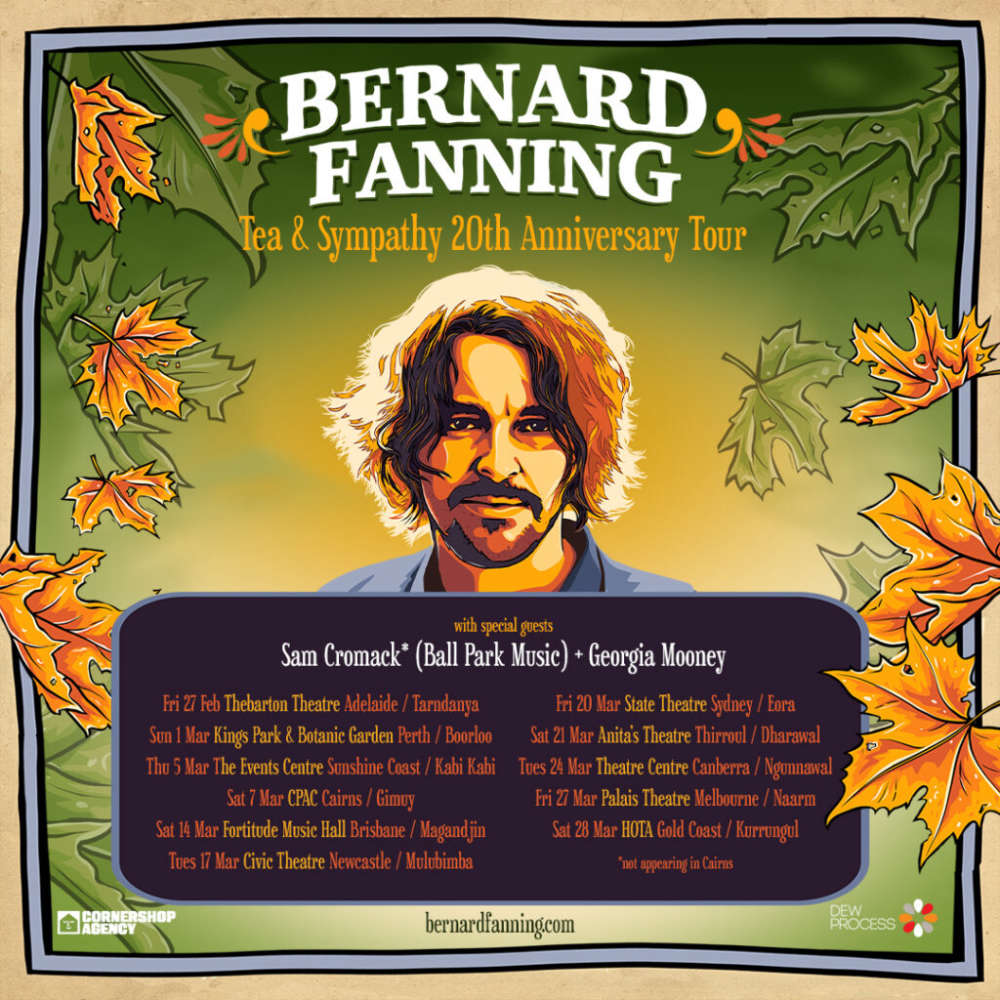 One of Australia’s most celebrated singer-songwriters, Bernard Fanning, is taking his celebration of 20 years of Tea & Sympathy around Australia in February and March 2026, playing all the songs from the album and more.